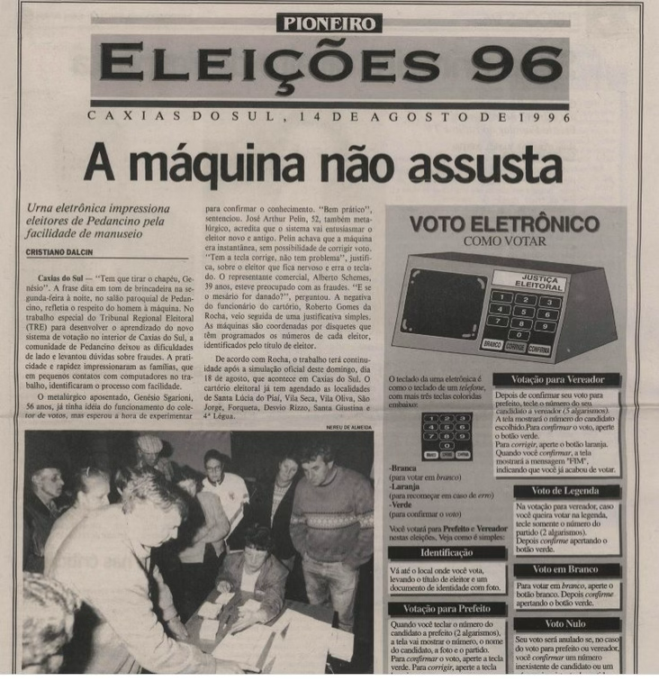 Poucos meses depois, nas eleições municipais daquele mesmo ano, as primeiras urnas eletrônicas estrearam oficialmente no país. Sob a presidência do ministro Marco Aurélio Mello no TSE, o Brasil testemunhou o que foi descrito no artigo“Urna Eletrônica Brasileira – Um Projeto de Sucesso” como uma “festa da cidadania”. Pessoas de todas as idades, incluindo eleitores analfabetos ou semi-alfabetizados, votaram com facilidade, derrubando de vez o pessimismo dos que duvidavam da capacidade popular de lidar com o computador.