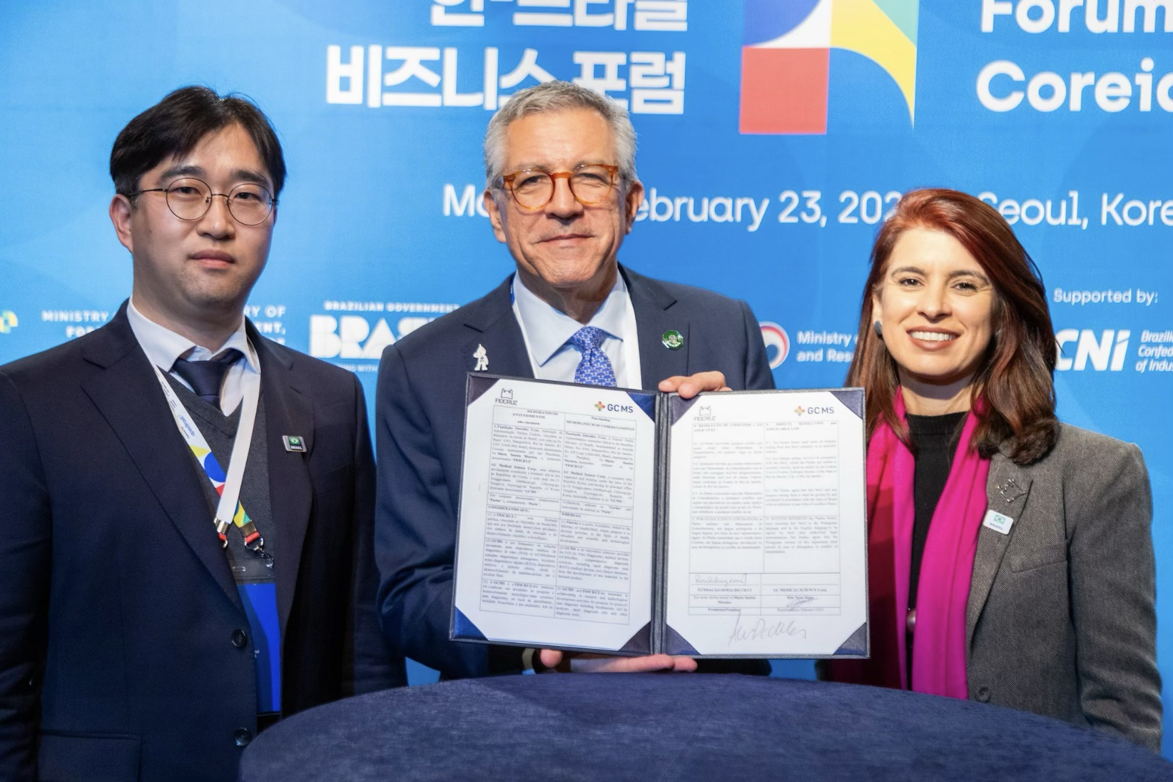 COOPERAÇÃO TECNOLÓGICA – A Fundação Oswaldo Cruz (Fiocruz) e as empresas sul-coreanas Optolane Technologies, GenBody e Green Cross Corporation também assinaram aliança estratégica de longo prazo na área de diagnóstico, dispositivos médicos e química clínica. As iniciativas fortalecem a cooperação tecnológica entre os dois países, com foco na transferência de conhecimentos, internalização de plataformas inovadoras e ampliação da capacidade produtiva nacional, contribuindo para maior autonomia e resposta rápida a emergências em saúde pública.